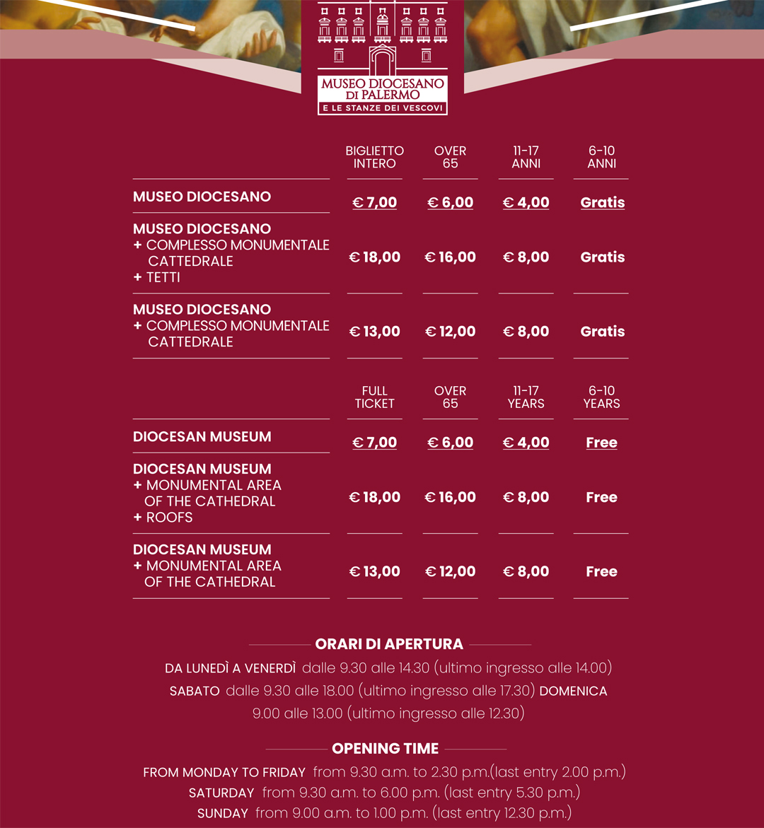 09:00 - 13:00 ultimo ingresso alle 12:30